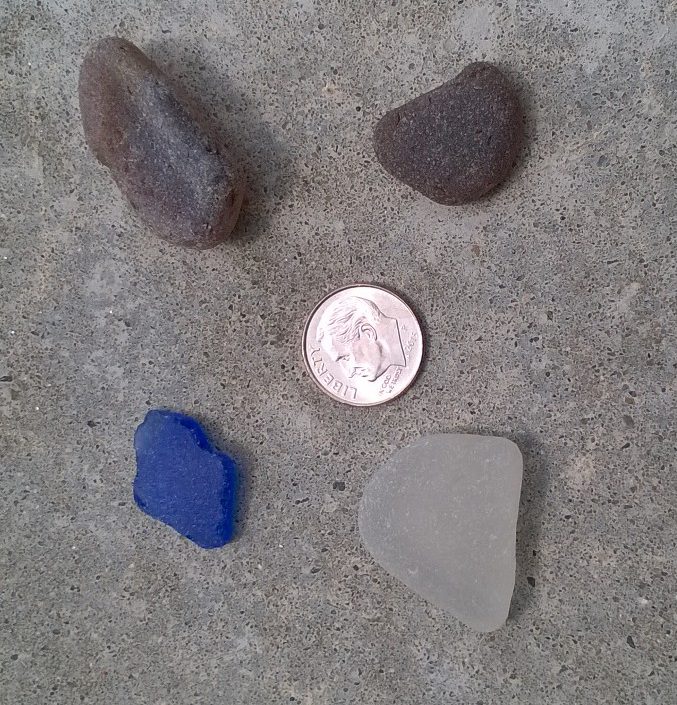 It’s “pre-season” for us as regards our regular sea glass beach. We use this period of great weather, but less than hard-core beach-going to visit other sea glass shores. Today, we chose a general direction based on some of the public sea glass information out there. In the end we hit two spots in that general vicinity.